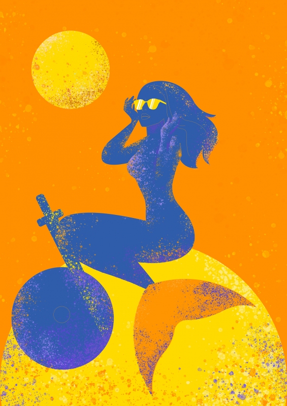 Ilustracja: letnia wersja warszawskiej Syrenki.