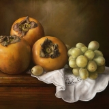Classic still life with persimmons and grape dostępny również jako